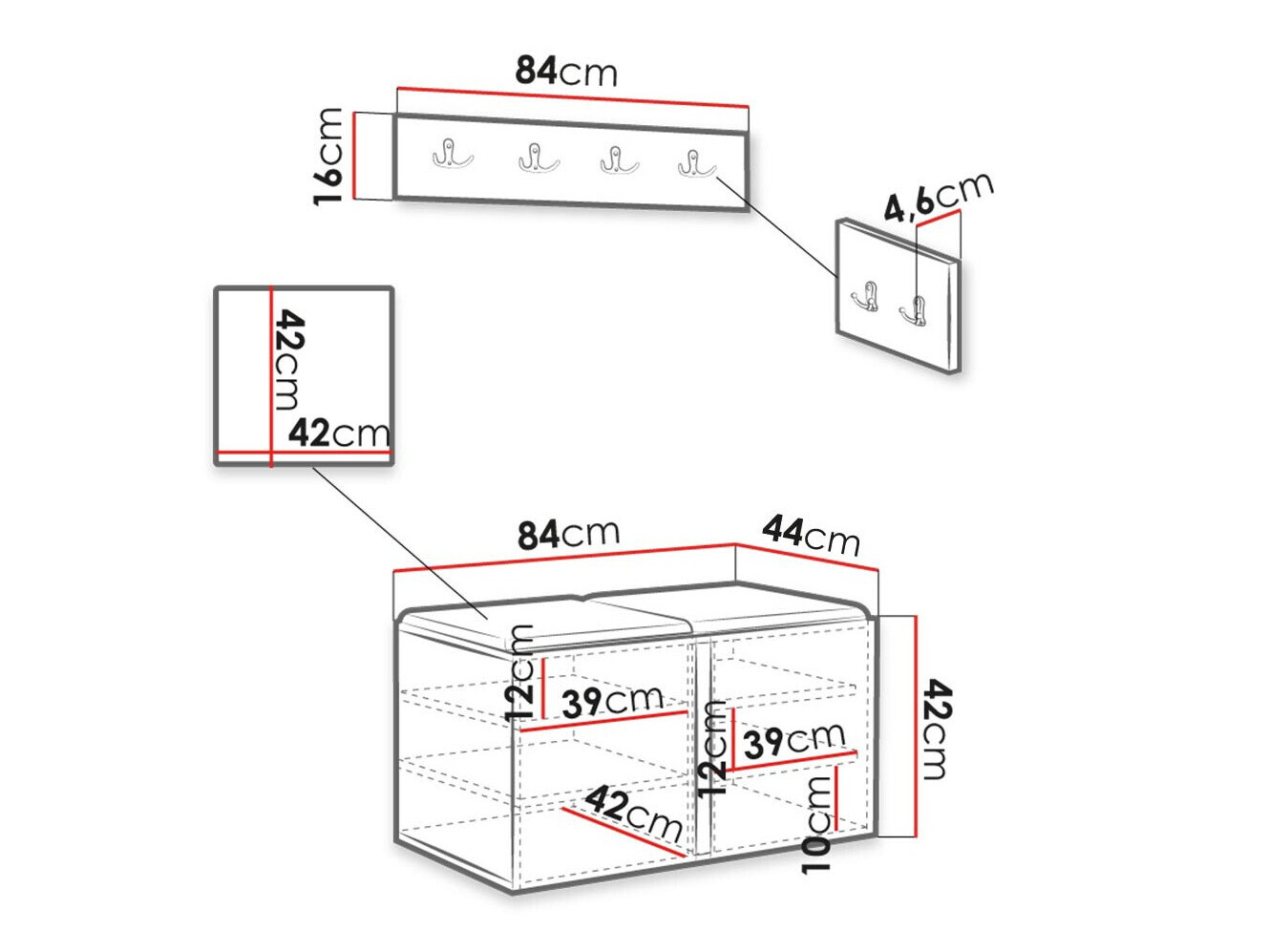 Dimenzije ormarića za cipele: