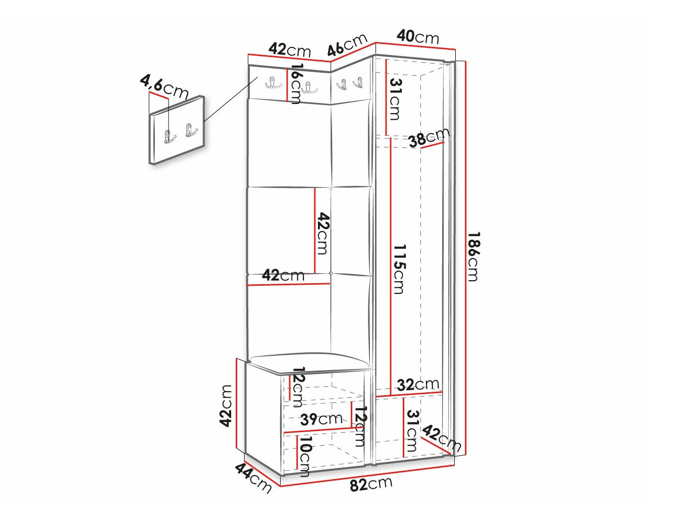 Dimenzije ormarića za cipele: