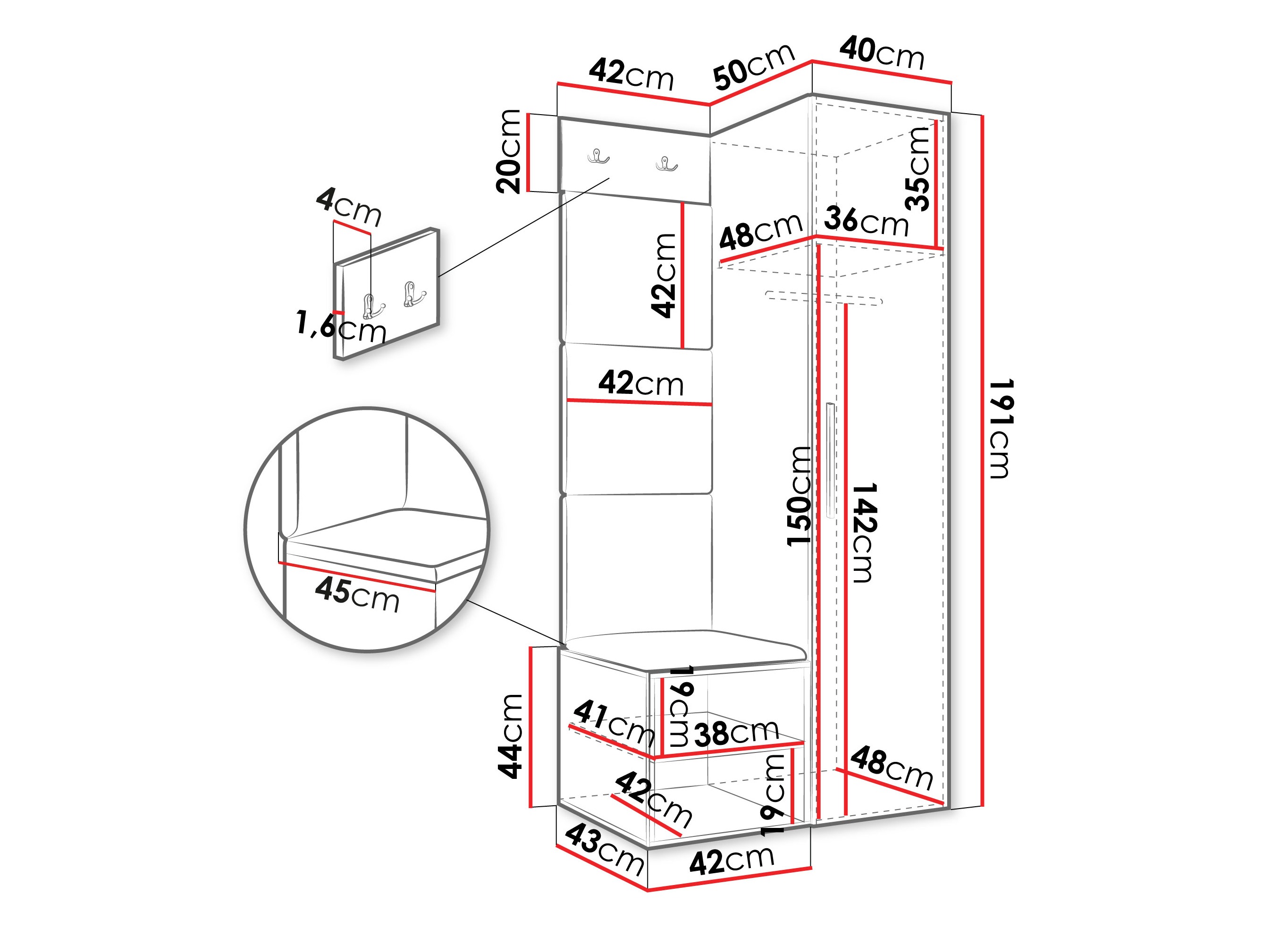 Dimenzije ormarića za cipele: