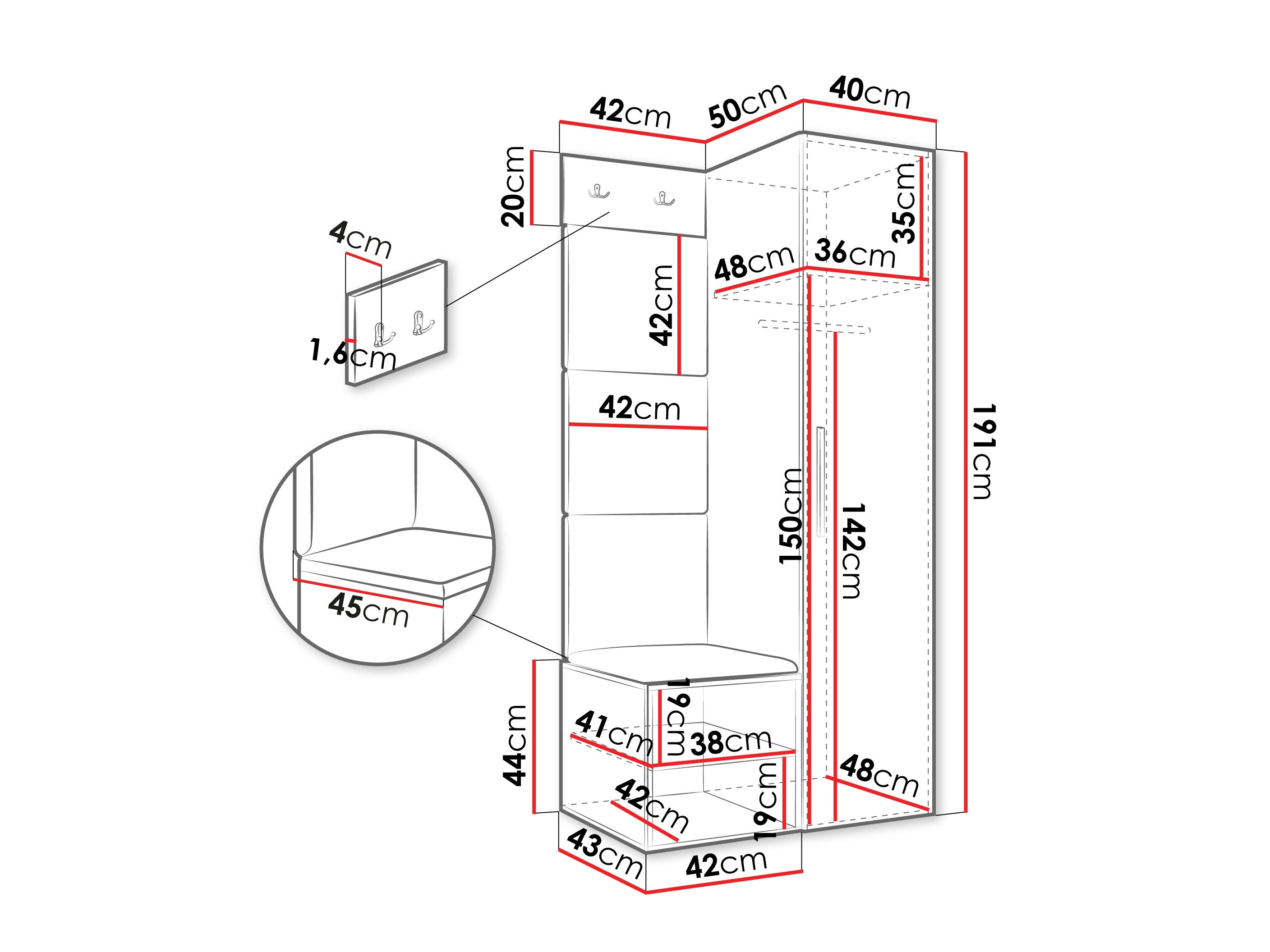 Dimenzije ormarića za cipele: