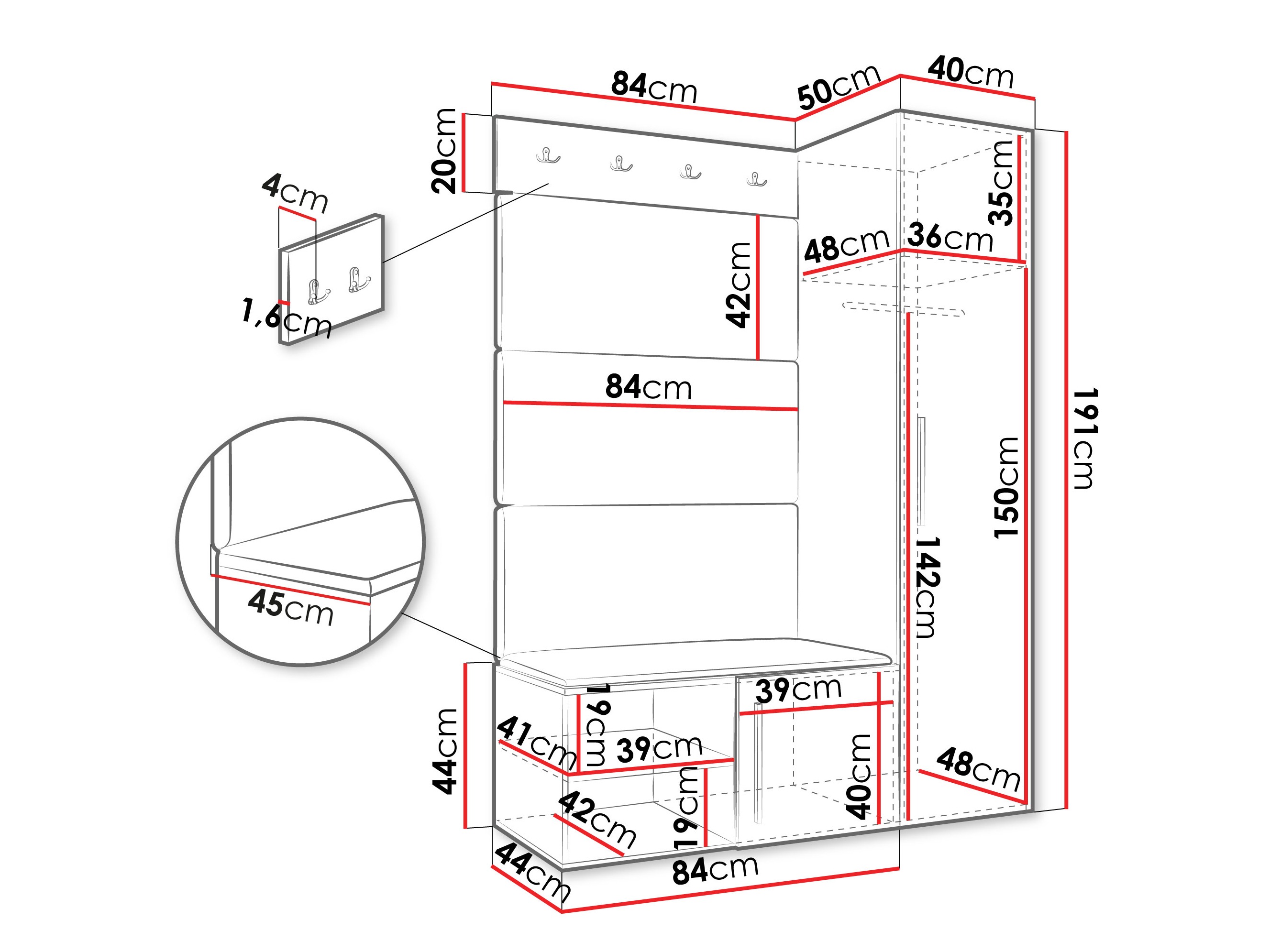 Dimenzije ormarića za cipele: