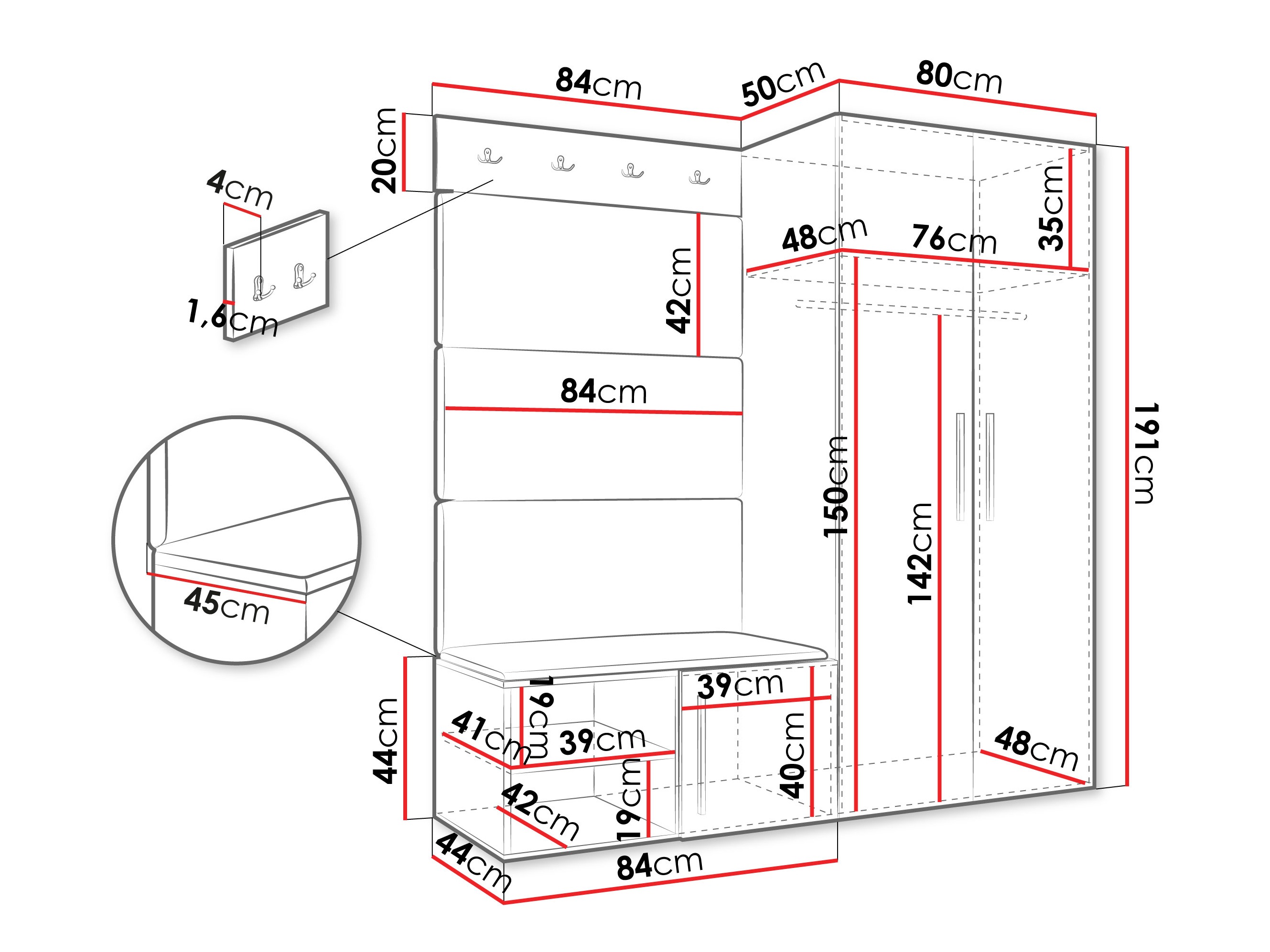 Dimenzije ormarića za cipele: