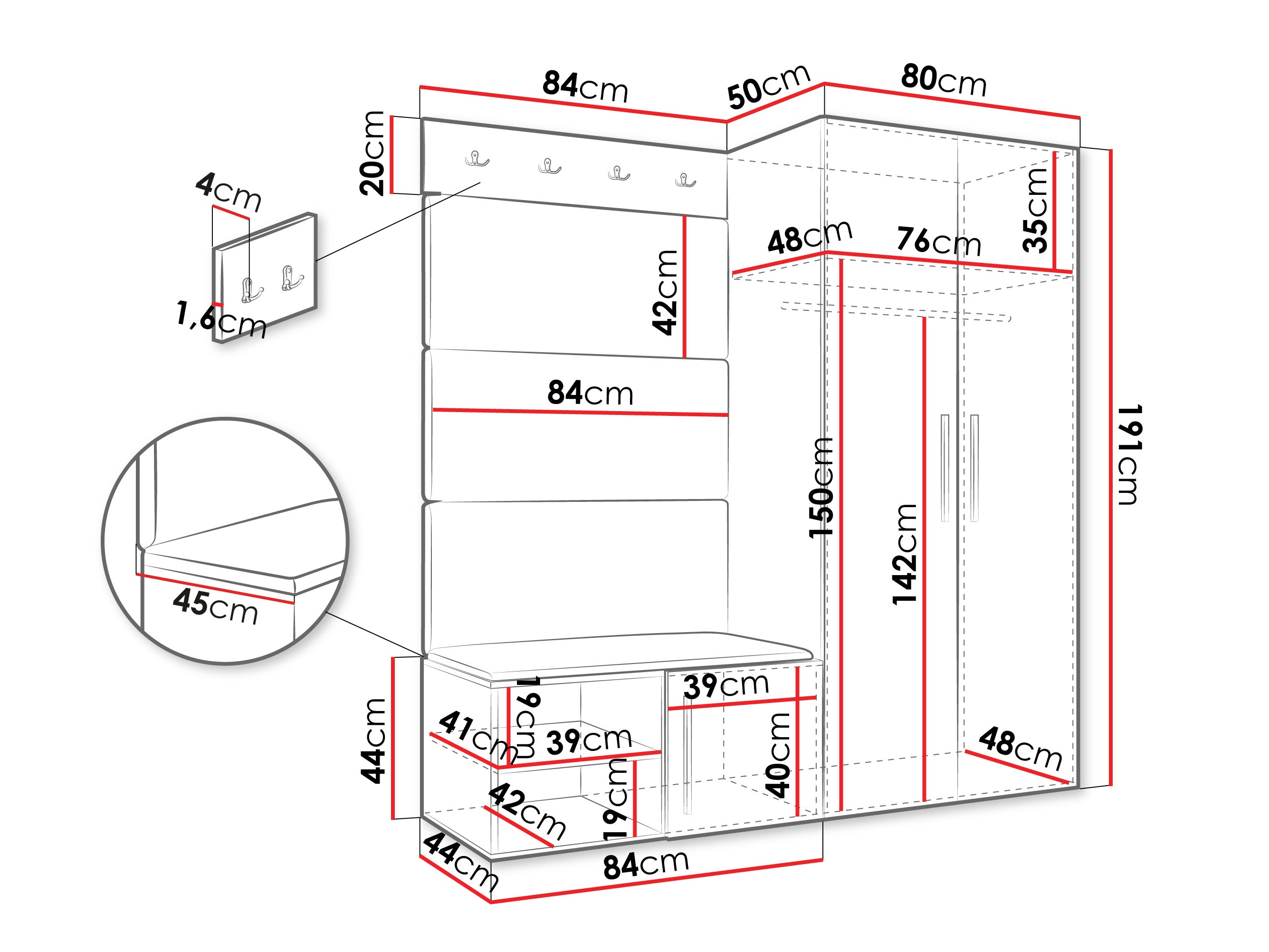 Dimenzije ormarića za cipele: