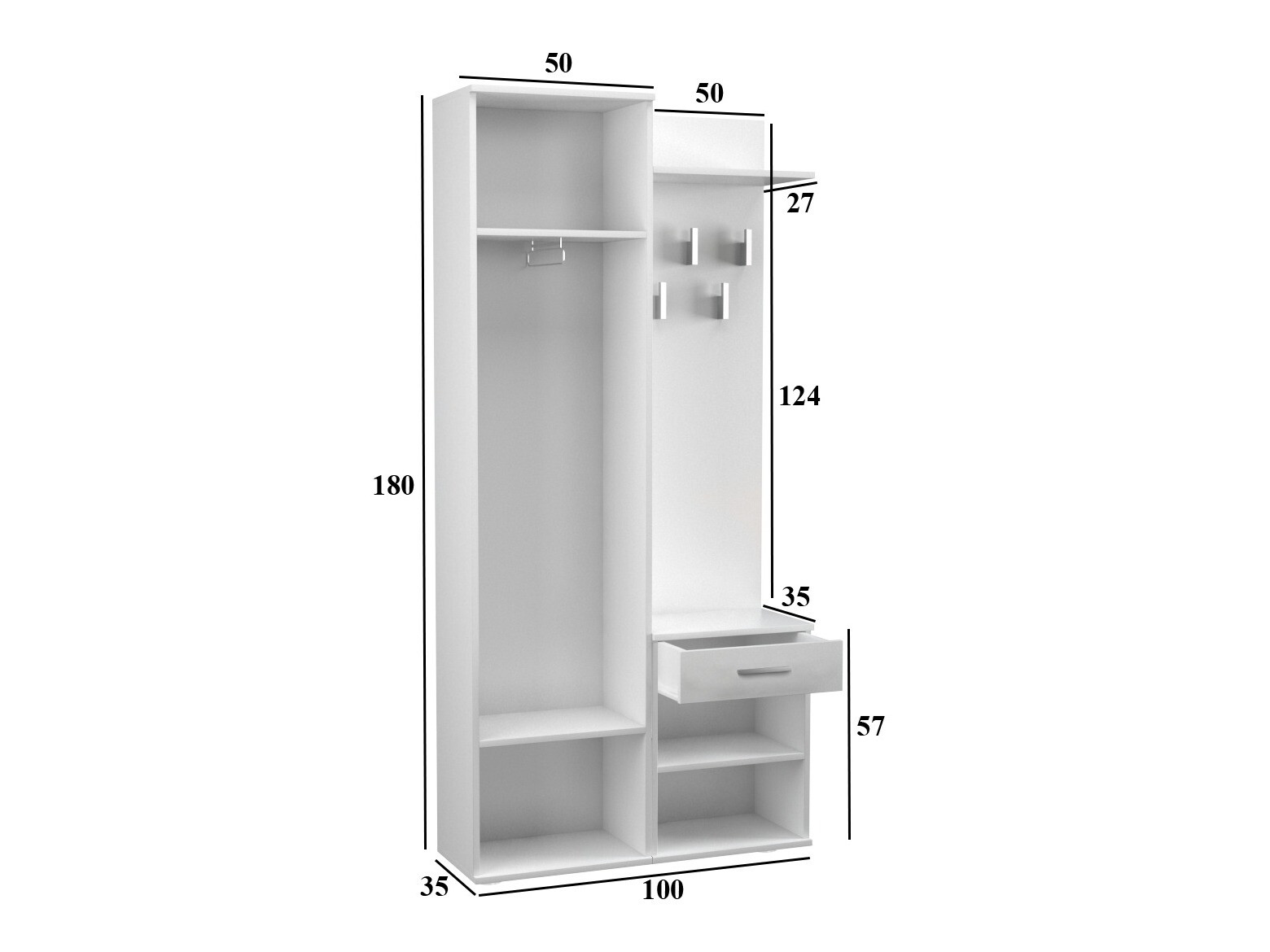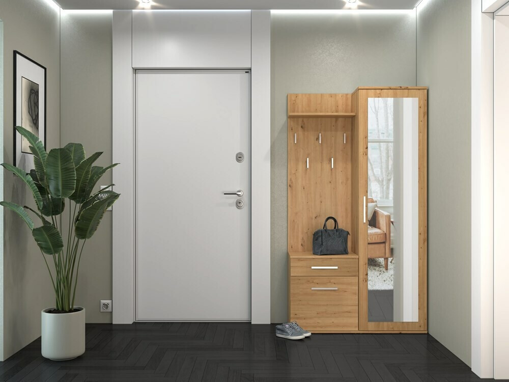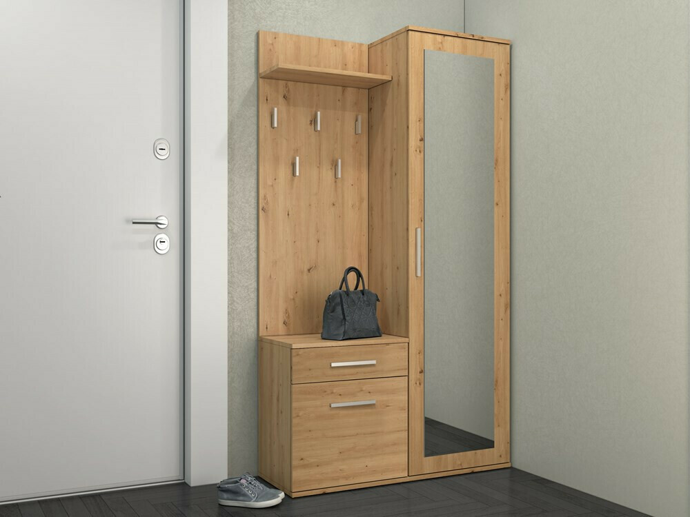Лепа боја, удобна и практична у малом простору. На основу фотографија није било могуће схватити да ће висећи предмет морати да буде причвршћен за зид, јер постоје три одвојена комада намештаја.