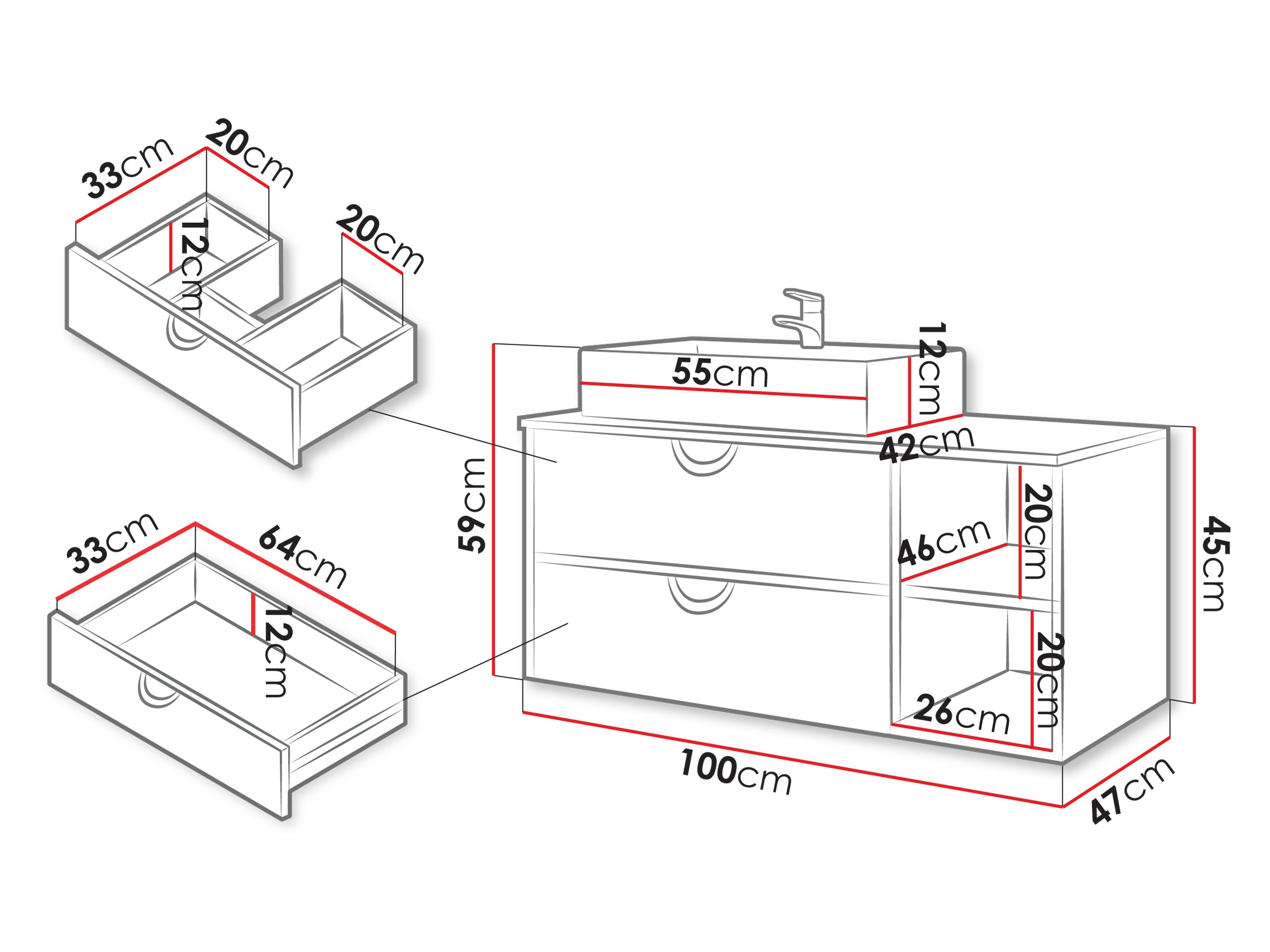 45 cm  100 cm  47 cm