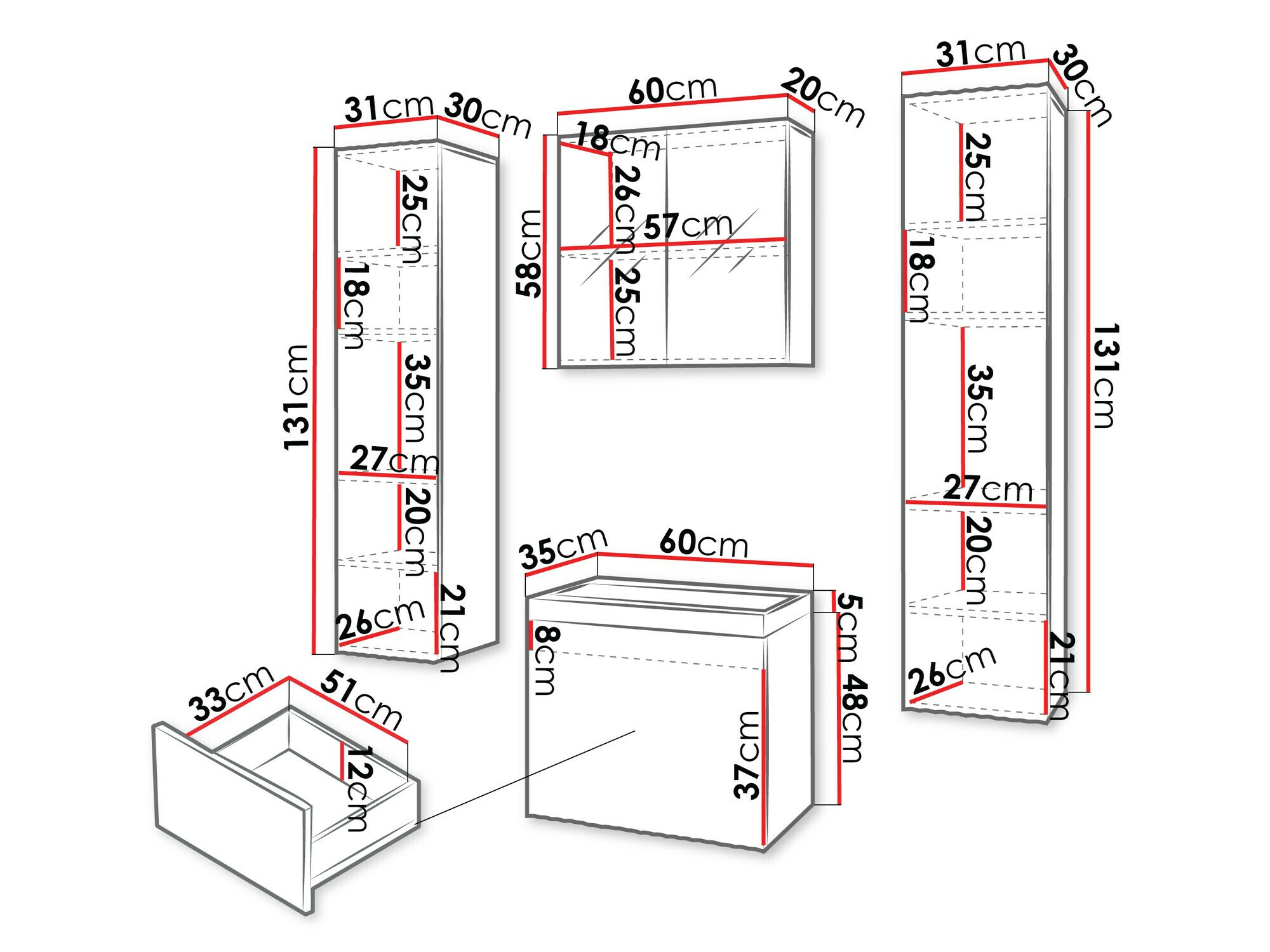 1310 x 310 x 300; 580 x 600 x 200 mm