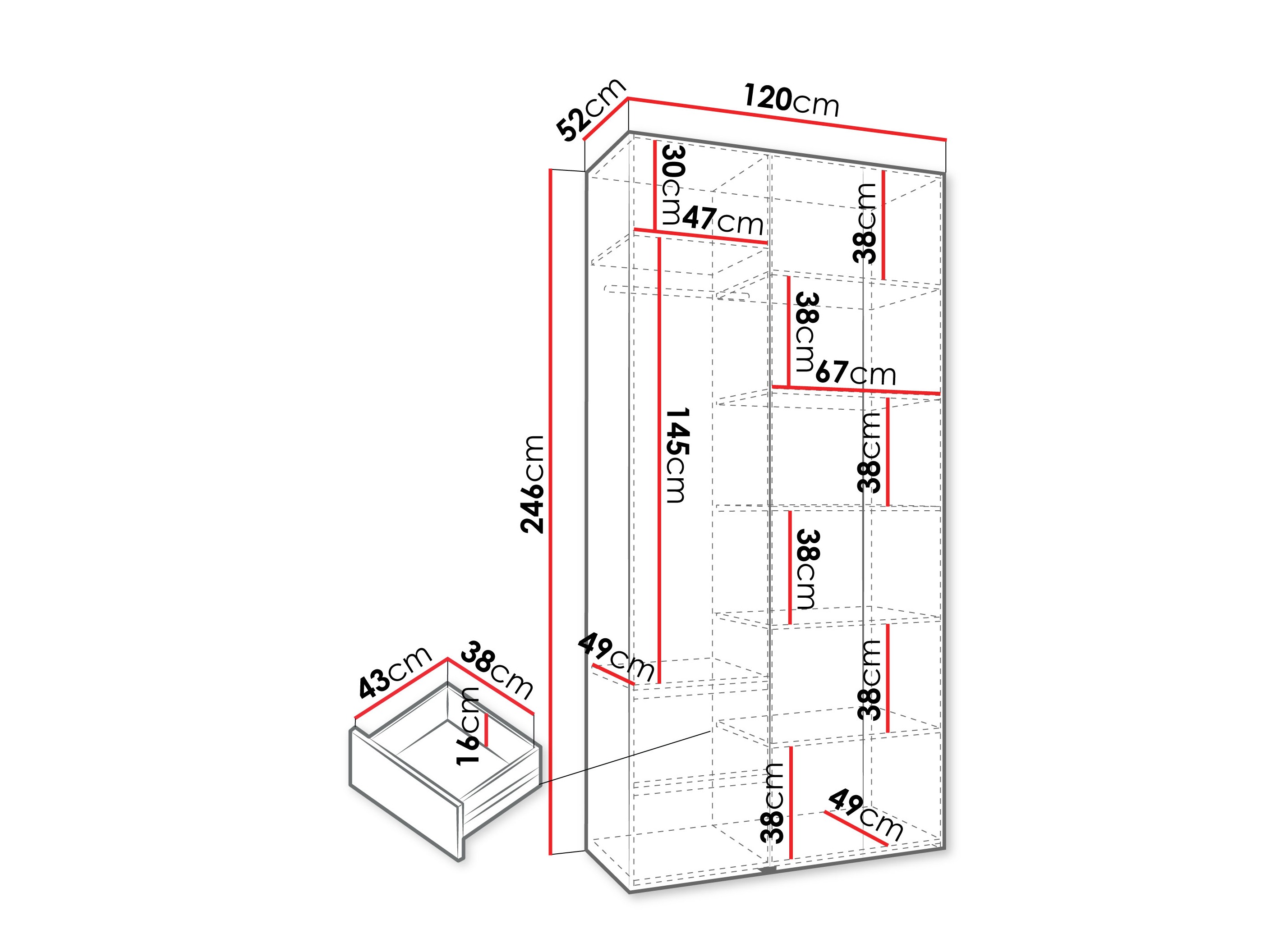 246 cm  120 cm  42 cm