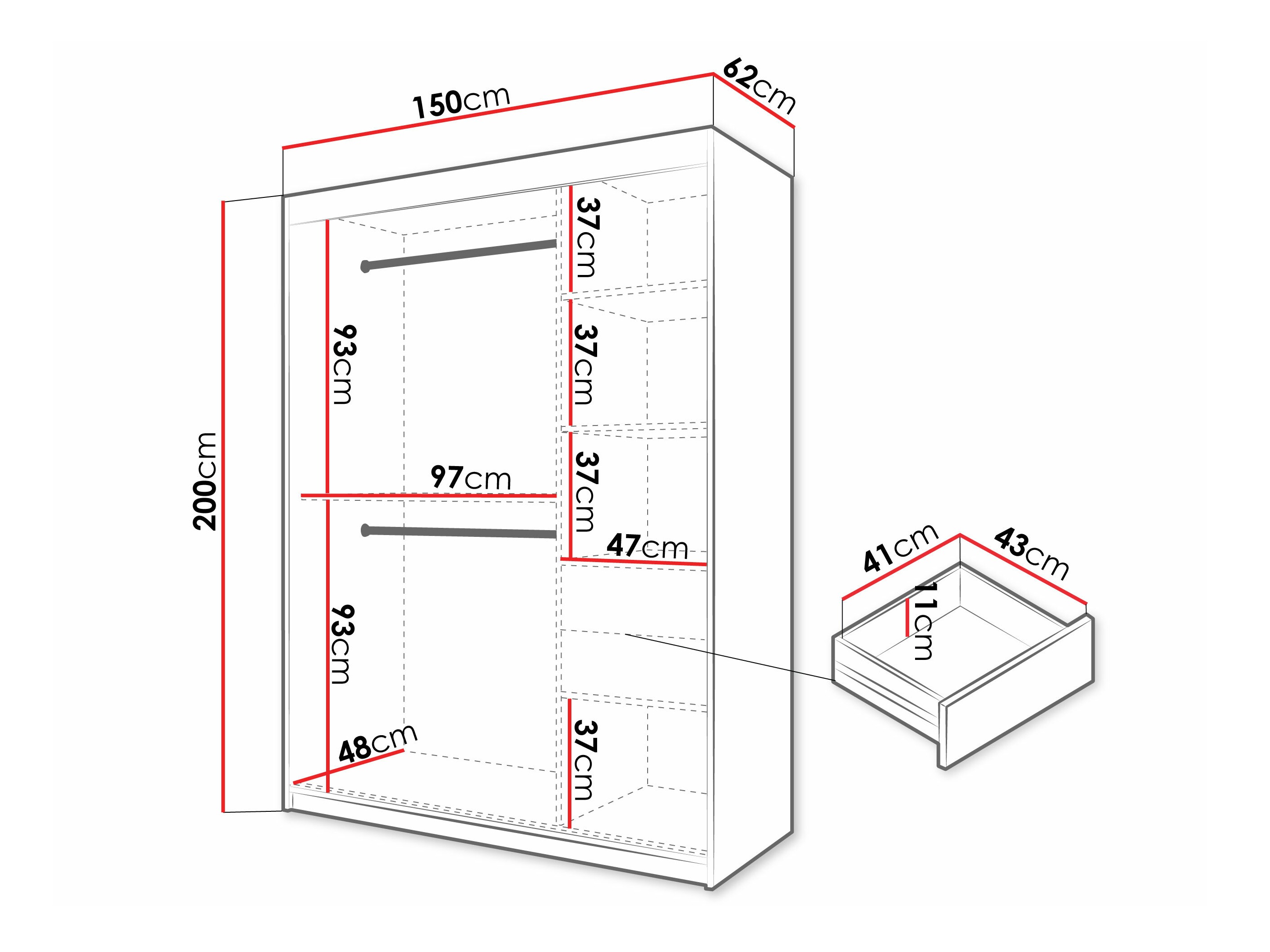 200 cm  100 cm  62 cm