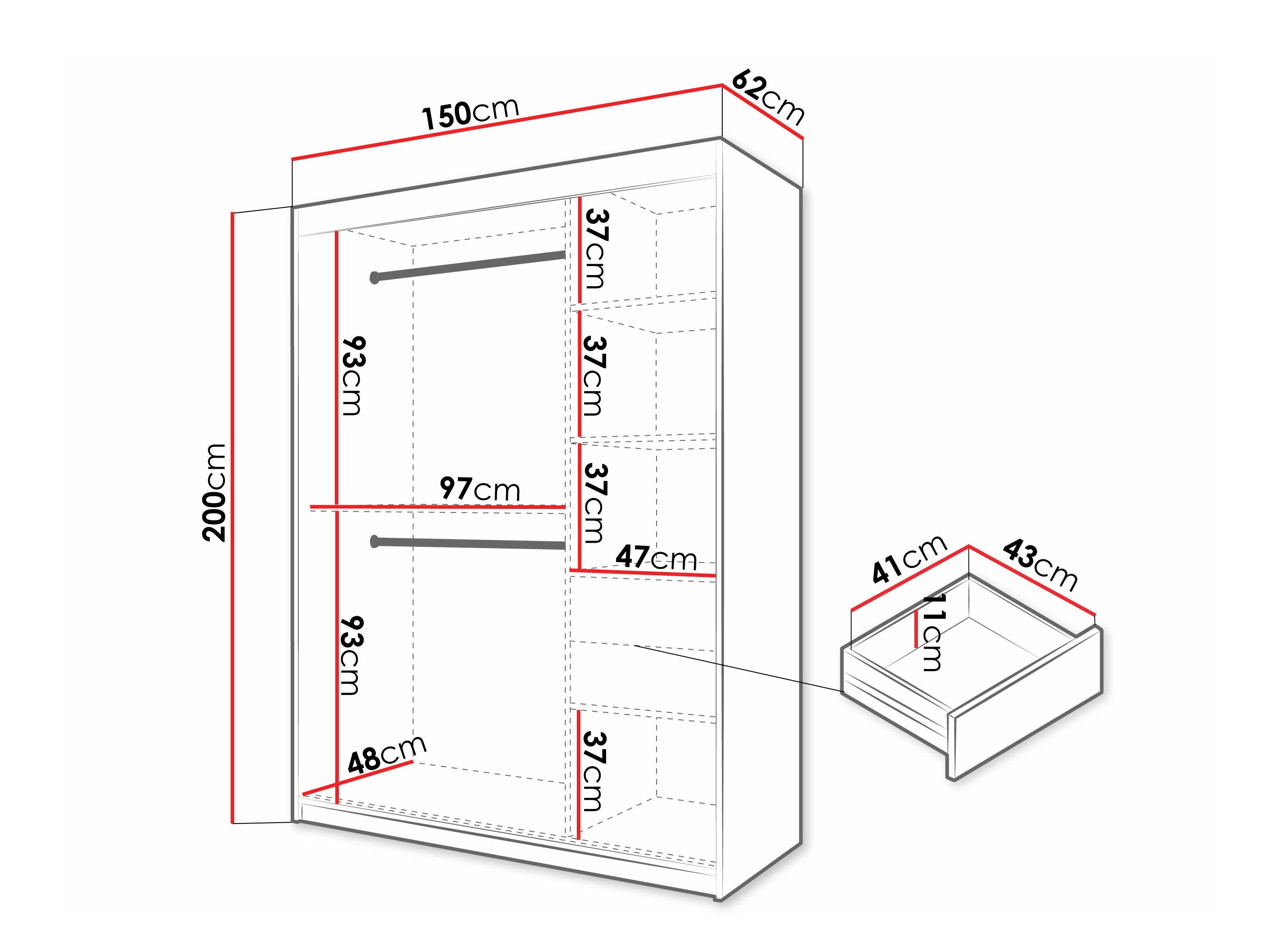 200 cm  100 cm  62 cm