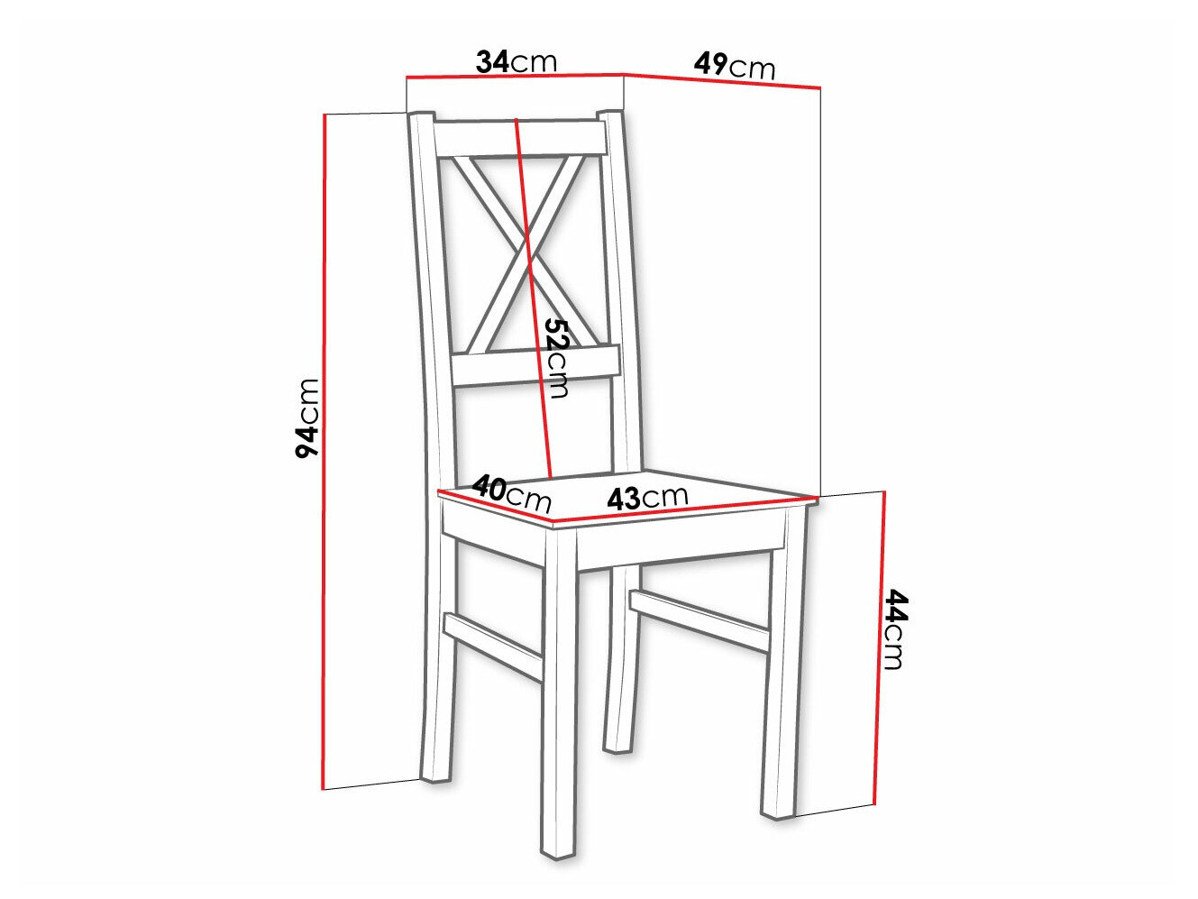 94 cm  43 cm  49 cm
