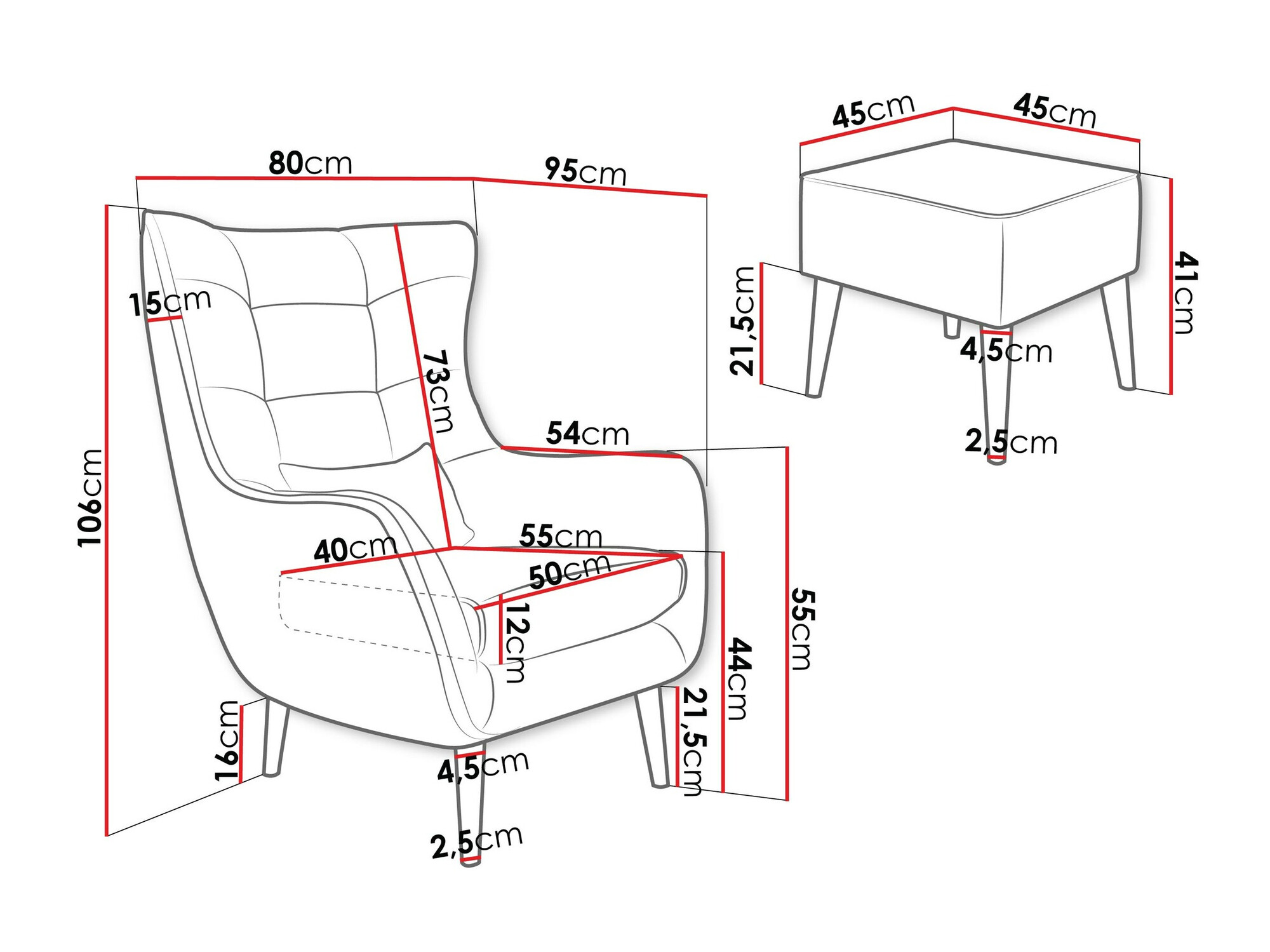 106 cm  80 cm  95 cm