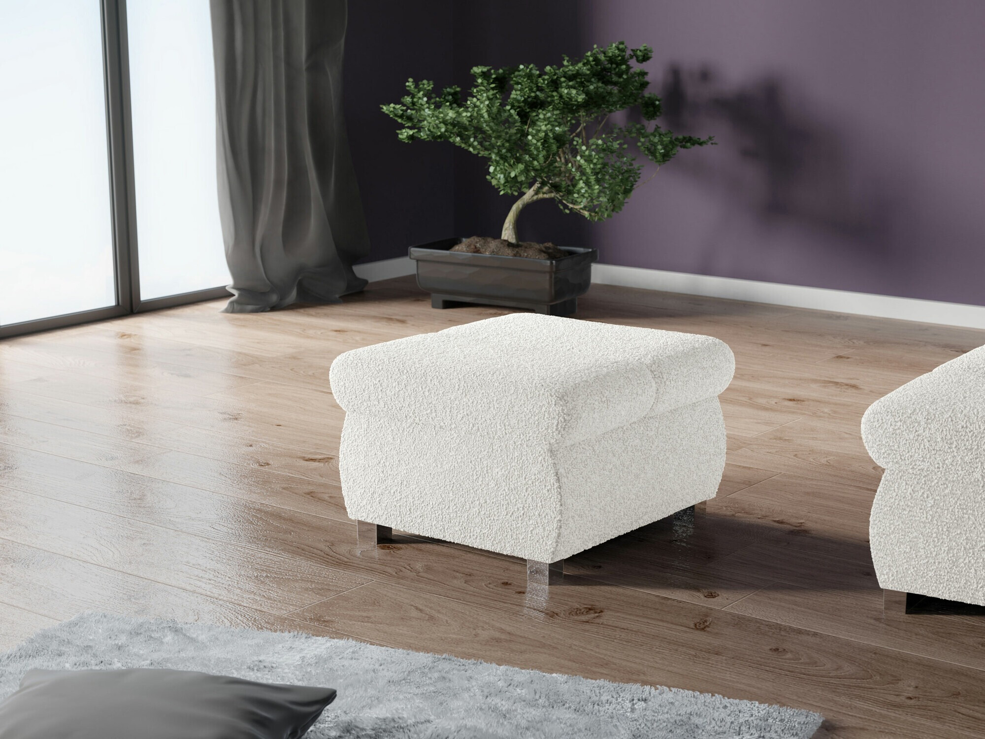 Tkanina "Boucle" (Bouclé) ističe se svojom jedinstvenom teksturom, kreiranom od petlji i čvorova različitih veličina. Ova karakteristična tekstura daje nameštaju izuzetan karakter i ugodan osećaj. Površina tkanine može biti mekane-glatke ili vunene teksture. Zahvaljujući čvrstoj strukturi, ova tkanina dobro održava svoj oblik, što je čini odličnim izborom za sofe, fotelje i druge komade nameštaja. Ako želite da stvorite prefinjen i moderan prostor, ova tkanina je savršen izbor.