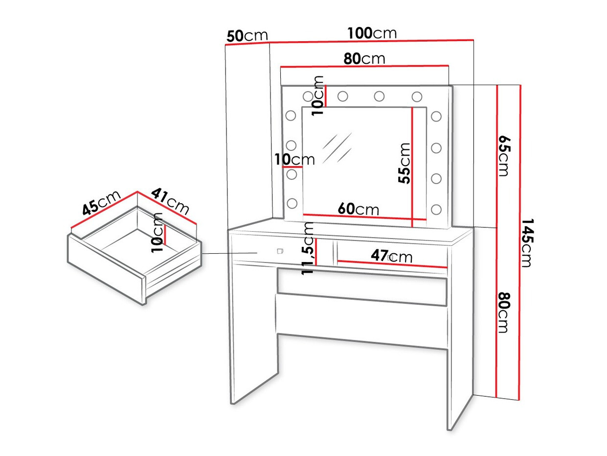 Сто је веома леп, интегрисано осветљење је довољно чак и за собу. Моја ћерка је веома задовољна, препоручујем.
