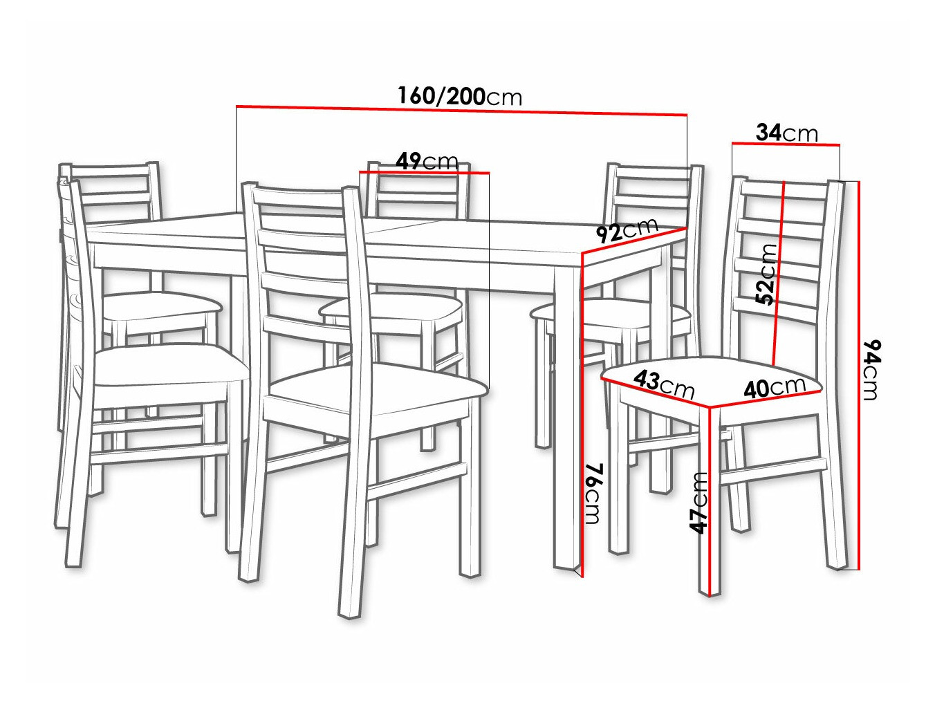 76 cm  92 cm  160 cm